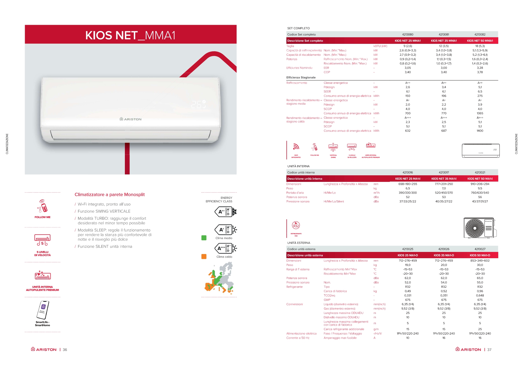 Il climatizzatore a parete monosplit Ariston Kios Net MMA1 rappresenta l'equilibrio perfetto tra design moderno, prestazioni elevate e gestione smart. Progettato per chi non vuole scendere a compromessi, questo dispositivo trasforma il clima domestico in un’esperienza di puro benessere, mantenendo i consumi sotto controllo.