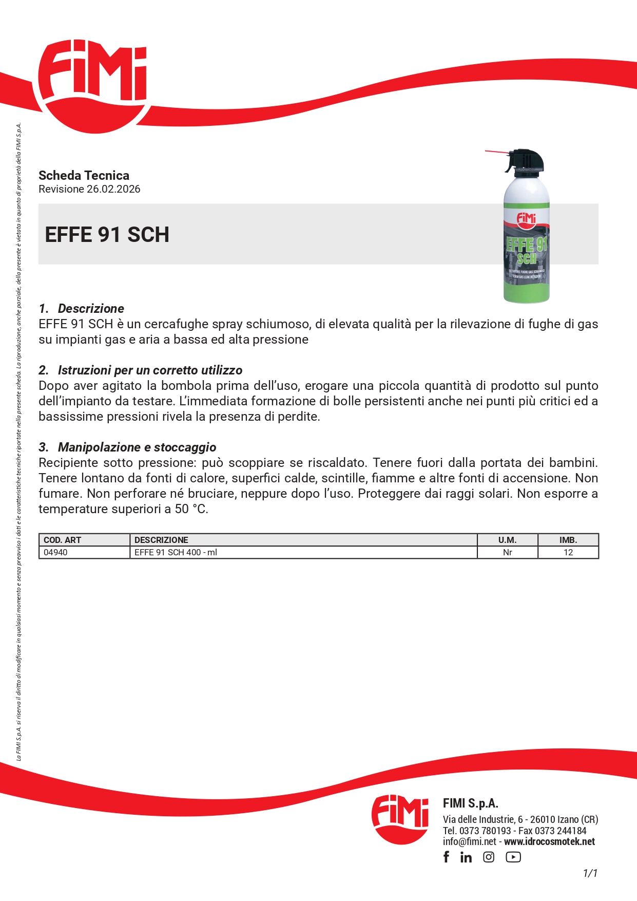 EFFE 91 SCH è il rilevatore di fughe gas professionale ad alte prestazioni, studiato per individuare con precisione istantanea anche le micro-perdite più difficili. Grazie alla sua speciale formulazione schiumosa, il prodotto aderisce perfettamente alle superfici, rendendo l'ispezione sicura e visibile anche nelle condizioni più complesse.