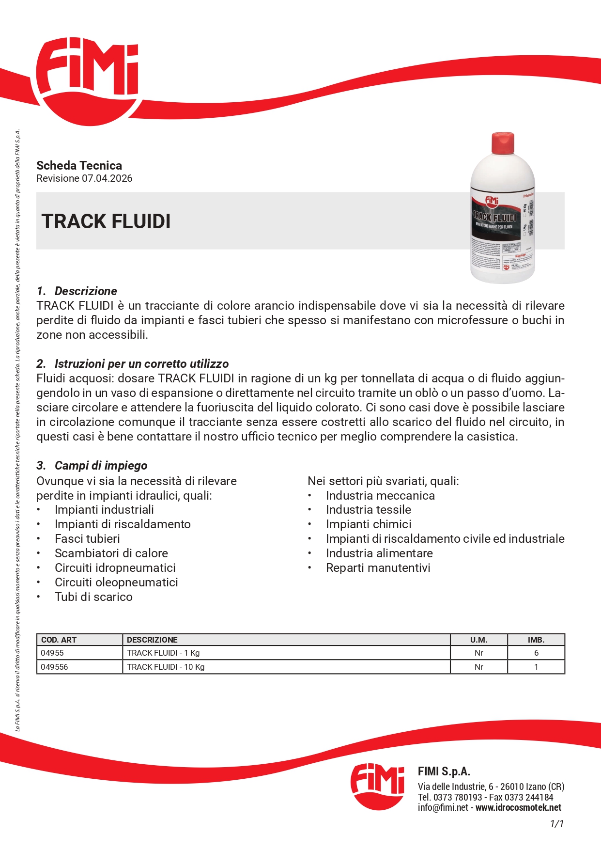 L'efficacia del prodotto è garantita da un elevato potere coprente: un solo chilogrammo di TRACK FLUIDI è sufficiente per trattare e colorare fino a 1 m³ di fluido, rendendo immediatamente visibile l'origine della perdita e permettendo un intervento mirato senza sprechi di tempo o demolizioni non necessarie.