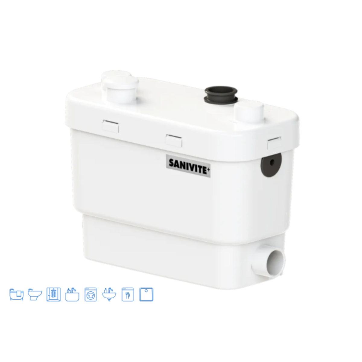 Il Sanivite Plus + è la pompa di scarico ad alte prestazioni progettata per permetterti di creare una nuova cucina, una lavanderia o un locale tecnico proprio dove desideri, anche lontano dalla colonna di scarico principale o in ambienti interrati.