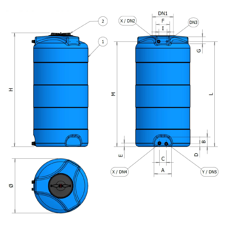 Utilizzo Tipico: Ideale per lo stoccaggio e la raccolta iniziale di liquidi, come l'acqua piovana o altri fluidi non aggressivi, in contesti domestici, agricoli o industriali.