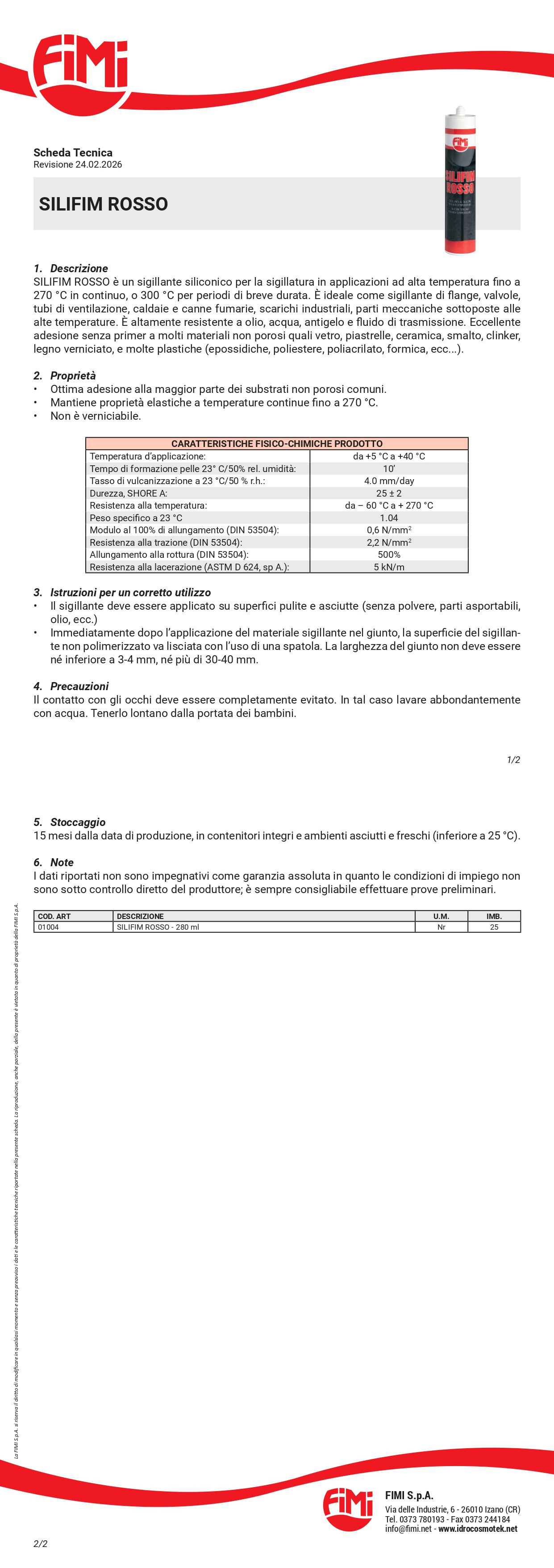 SILIFIM ROSSO è l’elastomero professionale progettato per la sigillatura e la giunzione elastica di componenti esposti a sollecitazioni termiche estreme. La sua formulazione acetica garantisce una stabilità superiore e una tenuta impeccabile anche in condizioni operative severe, dove i normali sigillanti tenderebbero a cristallizzare o perdere adesione.