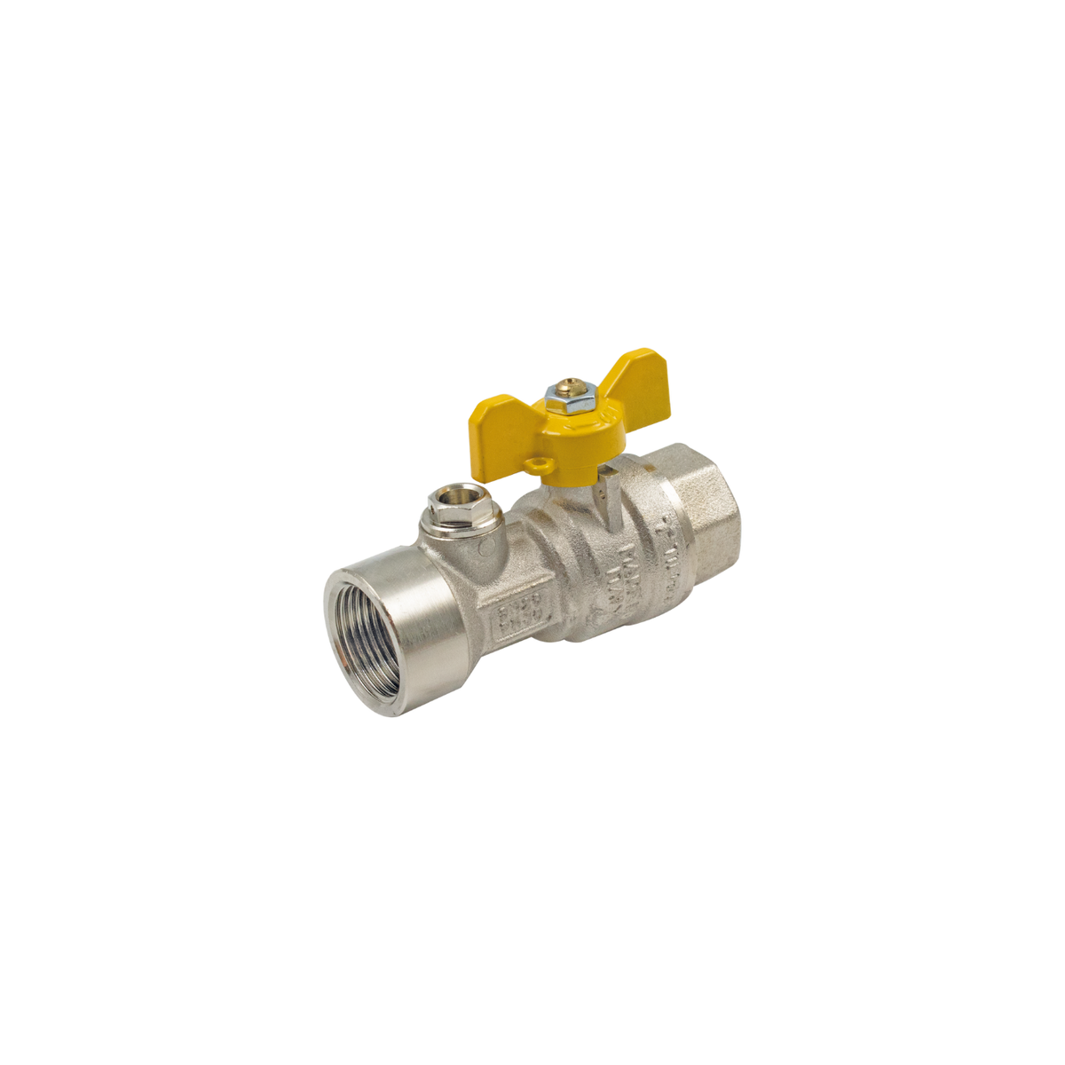 VALVOLA A SFERA TIEMME DIRITTA CON ATTACCHI FEMMINA PER GAS A PASSAGGIO TOTALE POST CONTATORE CON PRESA DI PRESSIONE diametro 1